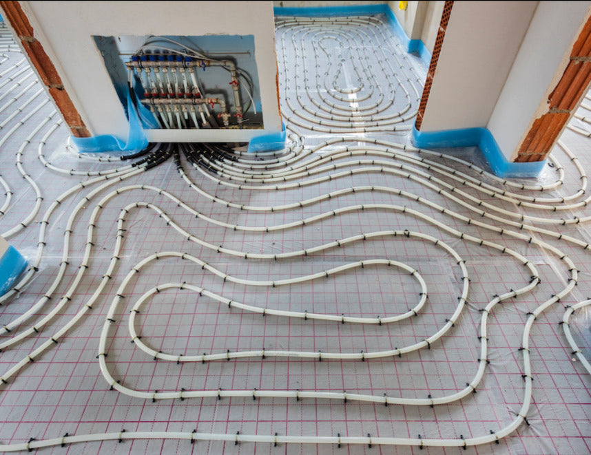 -) Zuleitungen vom Heizhaus bis zum Fußbodenheizung-Verteilerkasten