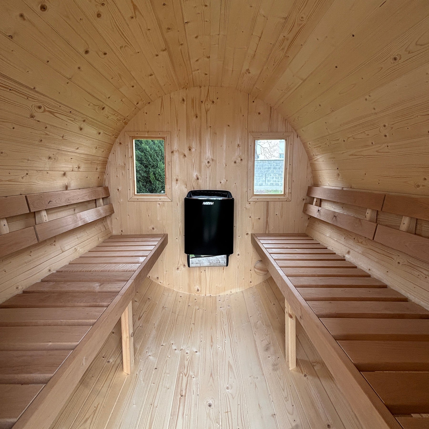 Beliebt und hochwertig ist unsere Fasssauna die erste Wahl im Outdoor-Bereich. Gemütlich und mit lichtdurchfluteten Fenstern, wird das Schneebergfass aus hochwertigem Fichtenholz hergestellt, besteht aus einem äußerst geräumigen Saunaraum für etwa 4-6 Personen und einem kleinen Erholungsbereich im Freien mit zwei kleinen Sonnenbänken.